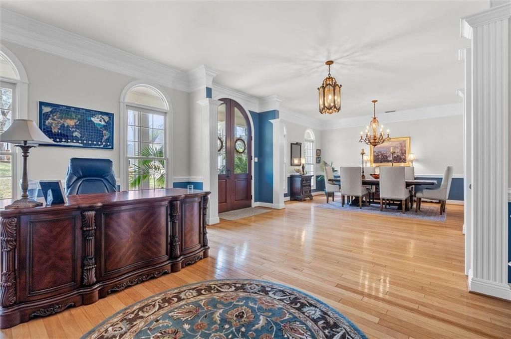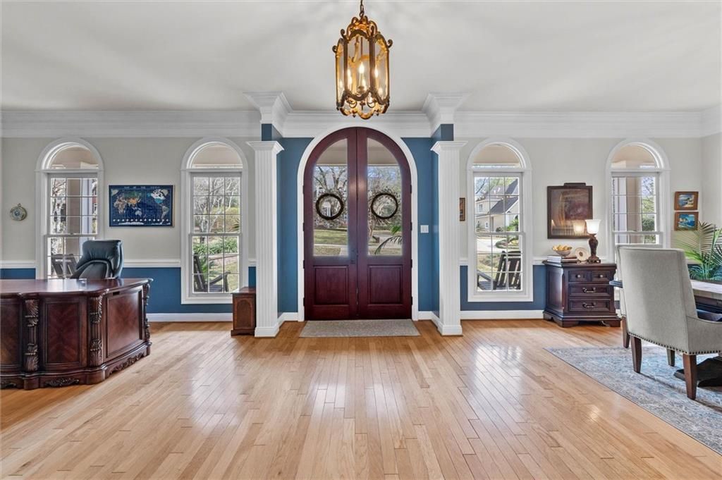 Located in Charleston Oaks, this spectacular 5+ bedroom, 4-bath home offers expansive living spaces, refined finishes, and well-planned updates throughout. With 10-foot ceilings, extensive crown molding, and a blend of hardwood, travertine, marble, and granite surfaces, the home combines timeless design with everyday comfort. Stunning custom Sapele Mahogany arched French doors create a striking first impression and offer a seamless flow between living areas. French doors connect the living and dining rooms to the family room, allowing the spaces to open fully for gatherings or remain separate as desired. The kitchen serves as the heart of the home and features a large island, walk-in pantry, informal dining area, double dishwashers, range with double ovens, built-in microwave, wine refrigerator, and both a full-size refrigerator and separate full-size freezer which will convey. The right side of the main level is where you will find the primary suite. The bedroom features hardwood floors and custom French doors leading to the deck. The spa-inspired bath highlights marble flooring, dual separate marble vanities, two walk-in closets, a private water closet, separate shower, and a Kohler soaking tub positioned beneath a large picture window overlooking the beautifully landscaped backyard. Connected to the primary suite is generous 14x15 room that provides exceptional flexibility and can serve as an office, custom wardrobe space, nursery, home gym, or craft room. An additional bedroom and an updated guest bath complete this section of the home. On the opposite side of the main level are two bedrooms connected by a shared Jack and Jill bath. The designer laundry room was formerly a 6th bedroom. This space can easily be converted back to a bedroom, and the original laundry area can be converted back to its intended use if desired. Upstairs, you will find a huge bonus room that will allow for multiple uses, two large bedrooms, and a full bath with separate vanity areas that connect to each bedroom. Also upstairs, there are two walk-in storage spaces (one large, and one small). Outdoor living spaces include both front and back porches that maximize natural light while minimizing heat exposure. The rear deck overlooks the professionally landscaped front and back yards, and there is a well for irrigation. Additional highlights include a butler's pantry off the kitchen, triple garage, 800 sq ft of under house storage, ample attic storage, three HVAC systems, two hot water heaters, termite contract with Cook's Pest Control, and a home warranty through American Home Shield provided by the seller. This home offers exceptional space and quality craftsmanship, all within one of the area's most established subdivisions.Buyer responsible for verifying all measurements and relevant details.