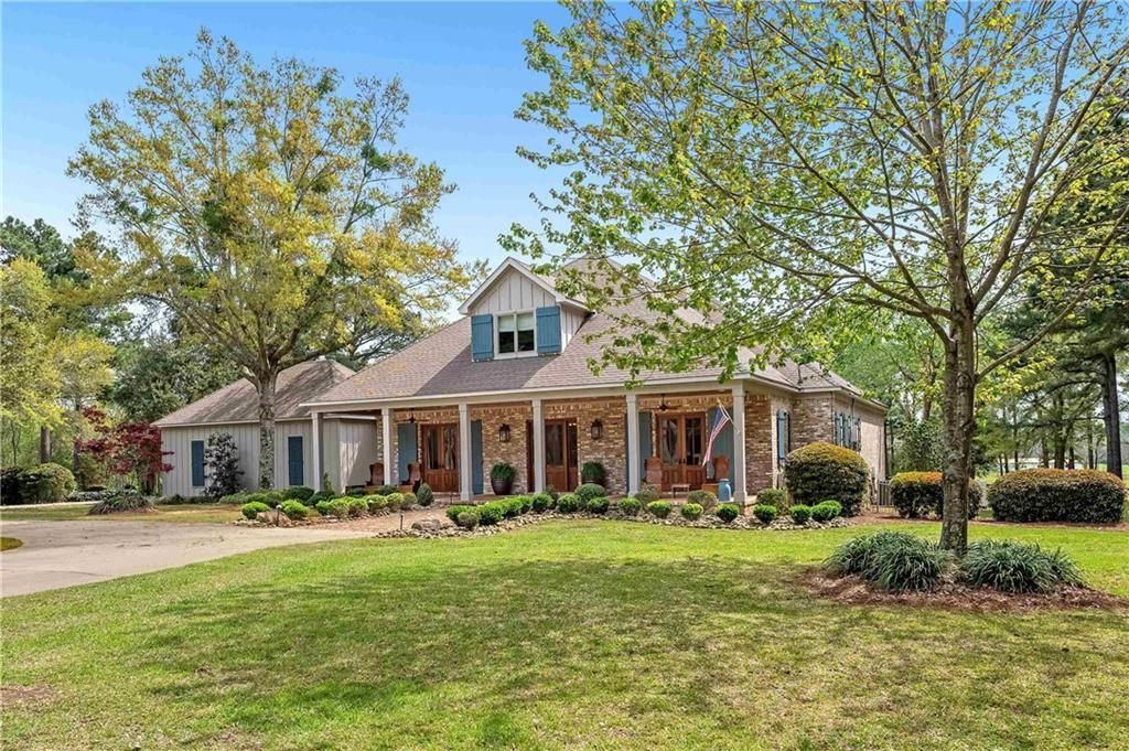 PRIVATE ESTATE ON 8 ACRES IN OAK POINT | Welcome to your private retreat in the heart of Fairhope! Nestled on approximately 8 acres of peaceful privacy, this stunning estate is located in the desirable Oak Point community, just minutes from Lakewood and downtown Fairhope. Step inside from the welcoming front porch to find timeless craftsmanship throughout, including pine floors, elegant cypress ceilings, and custom 8-foot mahogany doors. Large double-hung windows fill the home with natural light, creating bright and inviting living spaces. This expansive residence features 5 BEDROOMS, EACH WITH ITS OWN EN-SUITE BATH-including two generous primary suites and an additional main-level bedroom. Upstairs, two oversized bedrooms provide comfort and versatility. Don't need all five bedrooms? Convert one into a home office or recreation room to fit your lifestyle. The chef's kitchen is designed to impress with updated stainless steel appliances, granite countertops, a gas cooktop, double ovens, and a large center island. A charming brick fireplace anchors the formal dining area, while the great room features its own fireplace-both gas log and wood-burning capable. Enjoy year-round outdoor living on the oversized screened porch overlooking the sparkling GUNITE POOL and expansive property. The grounds are fully fenced, offering privacy, security, and room to roam. For equestrian enthusiasts, the property includes a 3,044 SQ. FT. BARN with 3 horse stalls, a small office, half bath, dressage ring, and additional pasture space. The property backs up to scenic Sleepy Hollow Road, providing a tranquil backdrop. This estate offers the perfect blend of elegance, comfort, and functionality-an extraordinary opportunity in Fairhope. Buyer to verify all information during due diligence.
